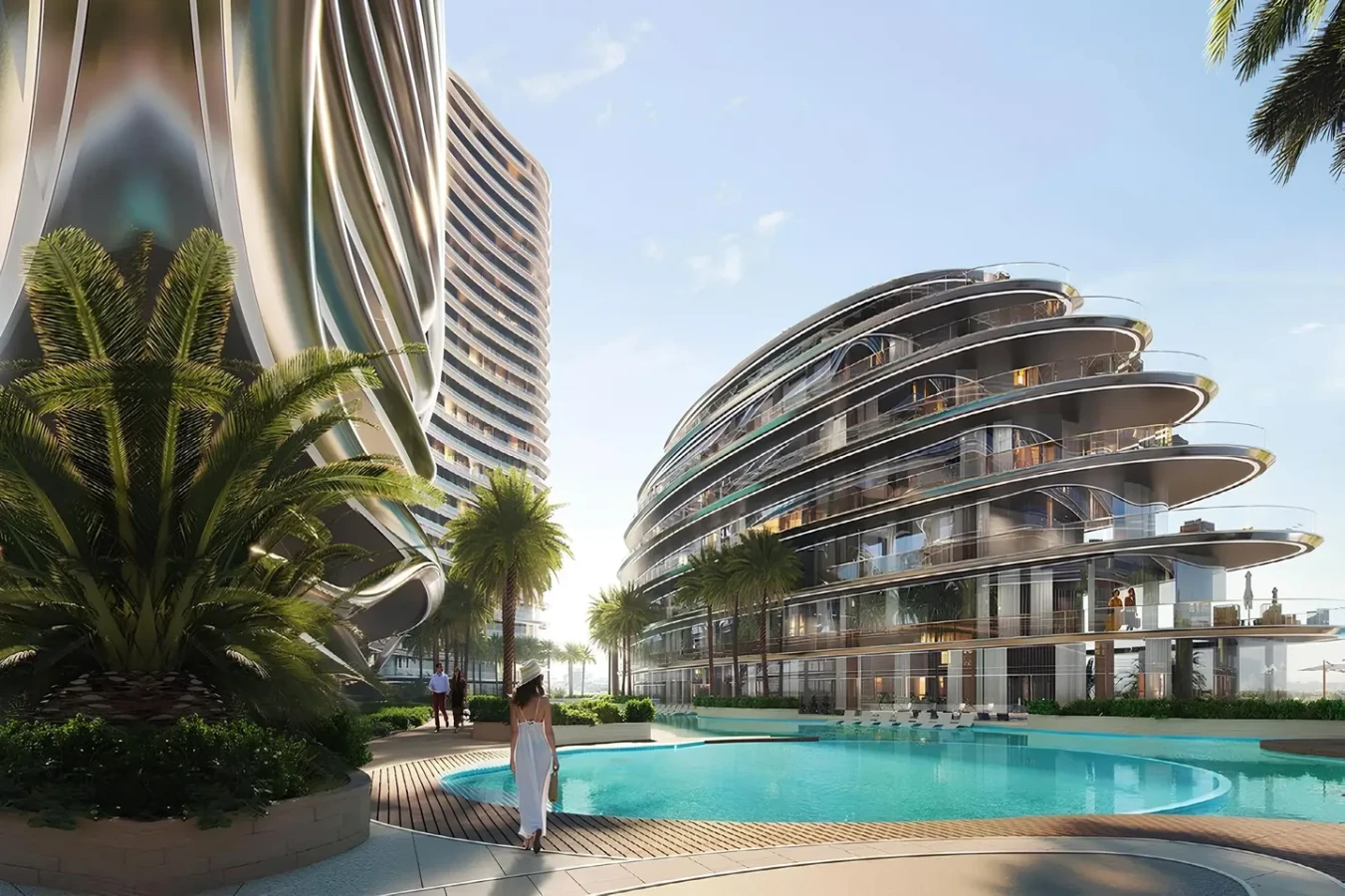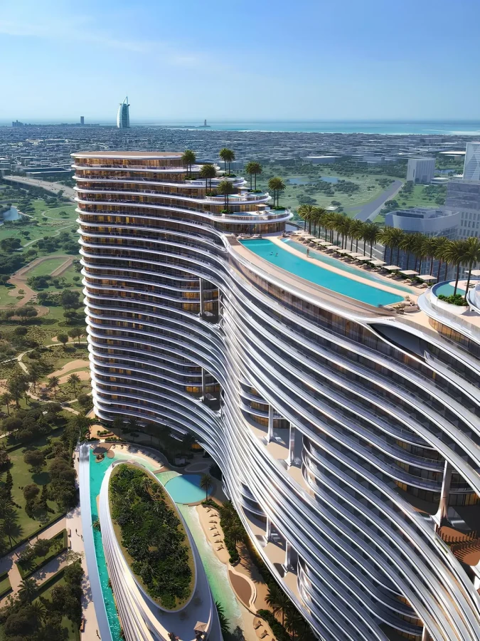1BR, 2BR & 4BR apartments plus exclusive residences with private pools in Business Bay Water-inspired façade with expressive balconies & floor-to-ceiling canal & skyline views Marble & glass interiors in natural tones with smart home system & 24/7 security Infinity pool, fitness center, basketball & paddle courts, jogging tracks & kids' play area 5 mins to Burj Khalifa & Dubai Mall 15 mins to Burj Al Arab & Dubai Airport
