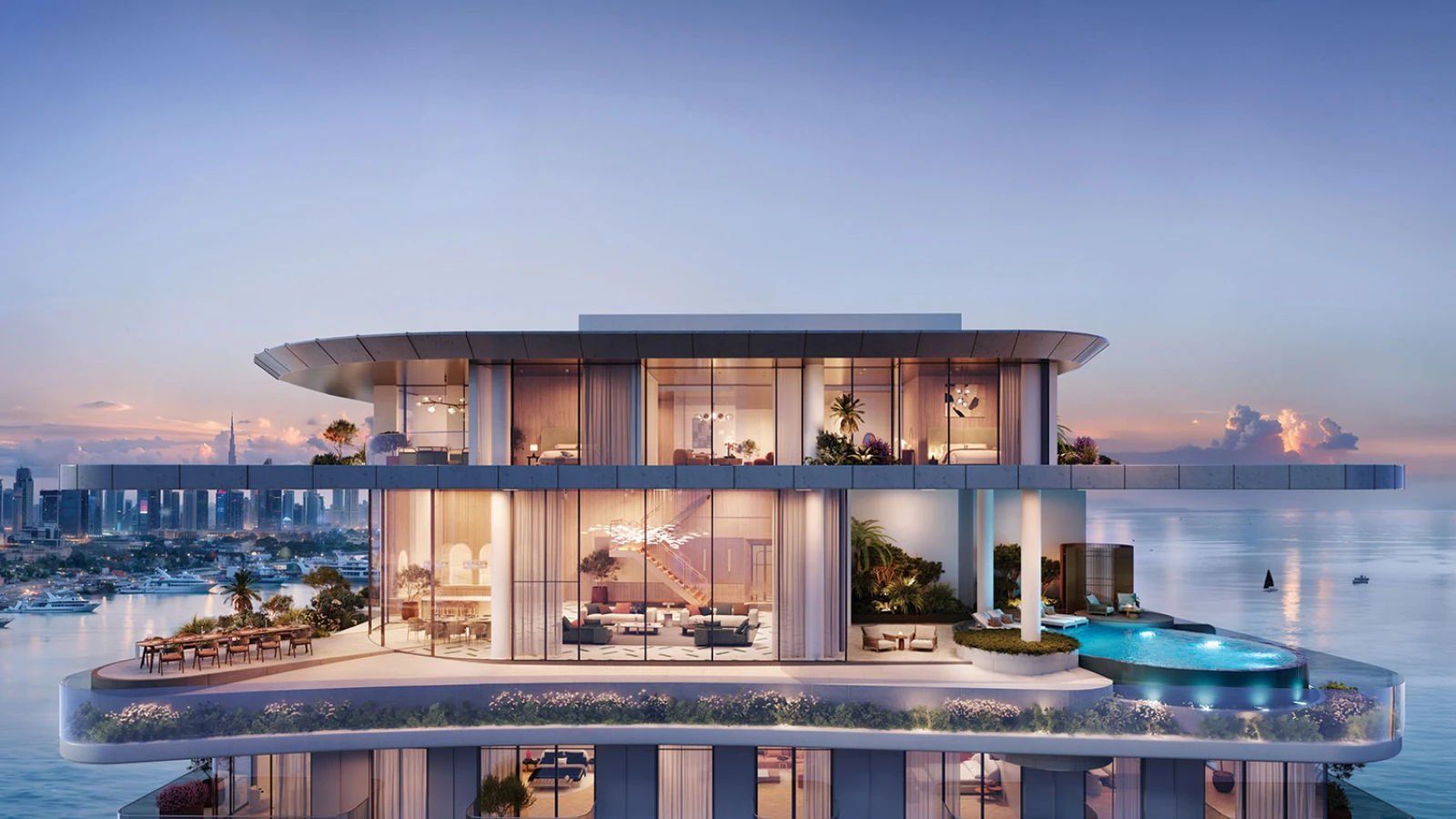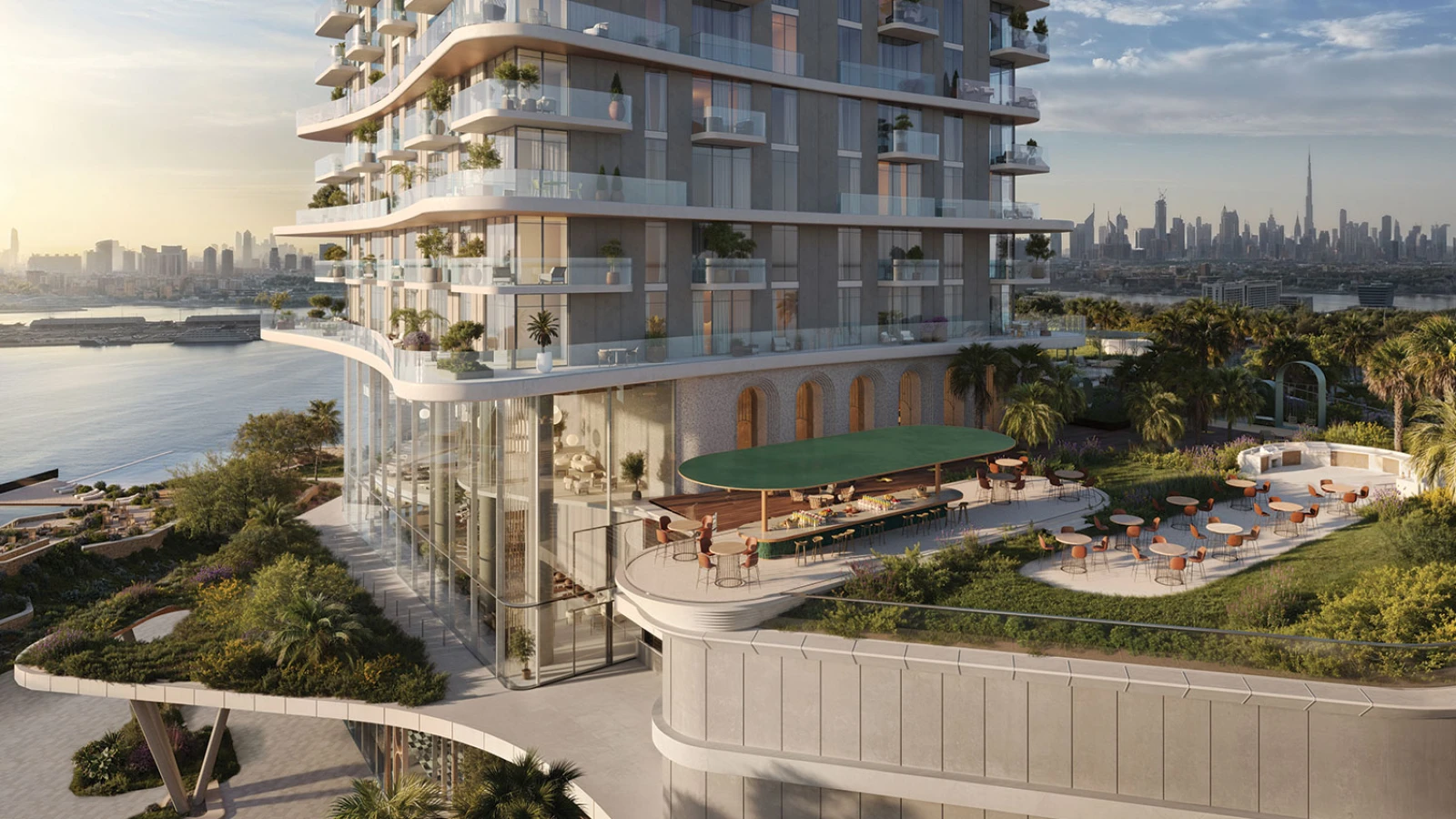 Sensia is a 35-story residential tower designed to maximize panoramic views of the Dubai skyline, the marina, and the ocean. The residences feature floor-to-ceiling windows, wraparound terraces, and lush private gardens, ensuring a seamless indoor-outdoor flow. This art deco-inspired development is strategically positioned to offer residents the perfect blend of urban vibrance and tranquil coastal beauty.